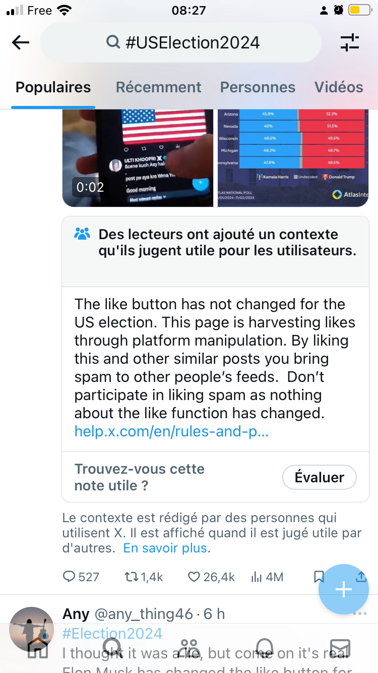 Lors de la dernière journée de campagne pour l’élection américaine de 2024, de fausses rumeurs se sont propagés sur X (ex-Twitter) faisant croire que l’animation sur le bouton “J’aime” avait été modifiée pour faire apparaitre un soutien à Trump lors de son déclenchement. Un exemple de feedback immédiat à dessein politique et polémique !